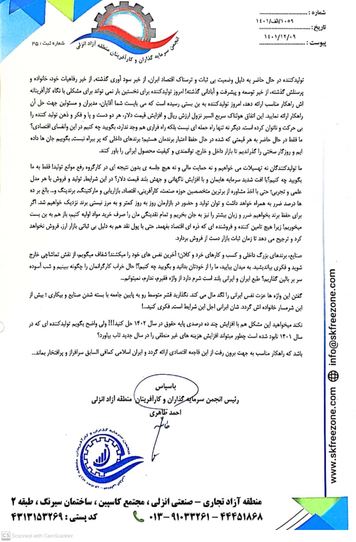 به گزارش تیتر گیلان، احمد طاهری- رئیس انجمن طی یک نامه سرگشاده با خطاب قرار دادن مدیران، مسئولین و دست اندرکارانی که مسئولیت پاسخگویی را دارند، دغدغه ها و نادیده گرفتن مشکلات تولیدکنندگان و کارآفرینان را به آنان متذکر شد و خواستار ارائه ی راهکار اقتصادی برای برون رفت از این اوضاع و ساختن آینده ای بهتر در سال آینده را خواهان شد.