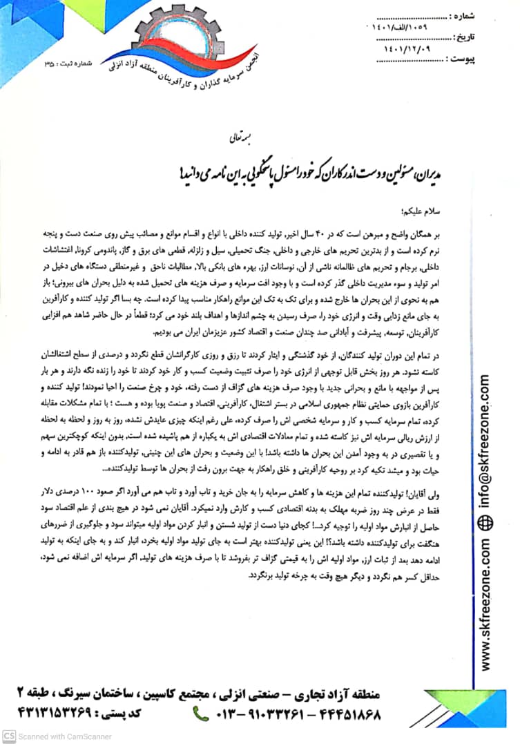 به گزارش تیتر گیلان، احمد طاهری- رئیس انجمن طی یک نامه سرگشاده با خطاب قرار دادن مدیران، مسئولین و دست اندرکارانی که مسئولیت پاسخگویی را دارند، دغدغه ها و نادیده گرفتن مشکلات تولیدکنندگان و کارآفرینان را به آنان متذکر شد و خواستار ارائه ی راهکار اقتصادی برای برون رفت از این اوضاع و ساختن آینده ای بهتر در سال آینده را خواهان شد.